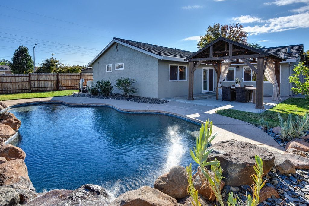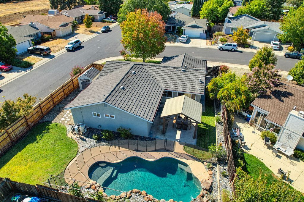 Move in ready! This spacious home offers 3 bedrooms plus an office making it easy to work from home. The beautiful pebble tech pool features a waterfall & Cabo shelf for ultimate relaxation. Enjoy the backyard year round under the large pavilion with string lights. The expanded kitchen features stone counters, tons of storage w/ pullouts galore, & a passthrough screen for convenience outside. Take notice of the lifetime Gerard stone coated steel roof, newer HVAC, new carpet and paint inside & out. Walk to Diamond Oaks Park, Fountains, & Galleria. You don't want to miss this one!!