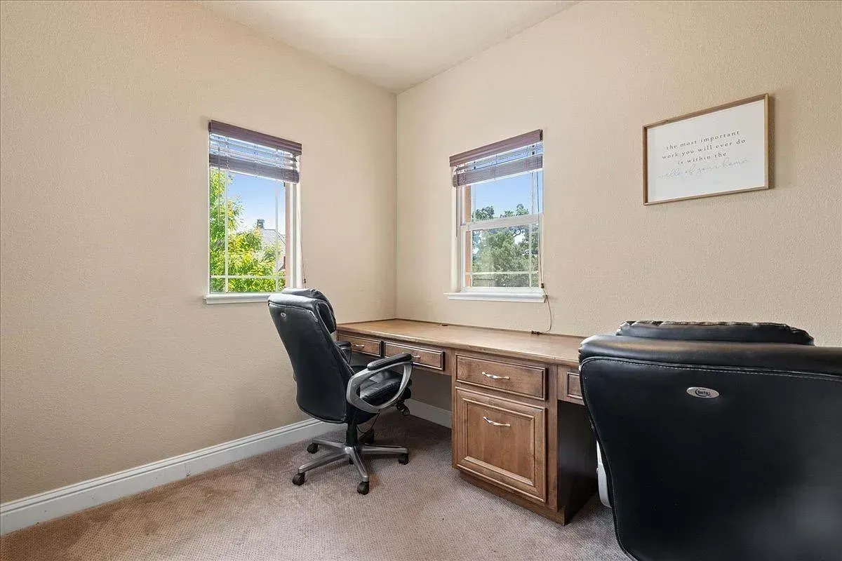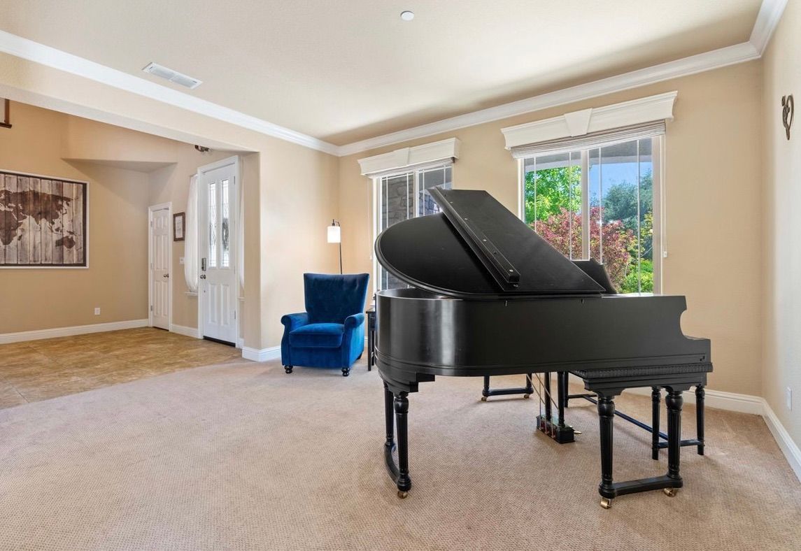 Highlights include a 65k solar system, a PebbleTec pool, a built-in outdoor kitchen, and a gas-plumbed firepit surrounded by a large grassy area with its own walking path. Inside, a spacious bonus loft currently serves as a movie room with a state-of-the-art projection system. There's also an extra room set up as a home office.